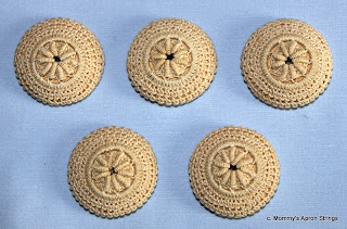 These crocheted buttons were given to me by a friend who knows I love vintage things. The crochet covers solid wooden buttons. They are either an ecru thread or have aged to this color. They are really pretty, but I haven't been able to think of what to put them on. Any suggestions?
