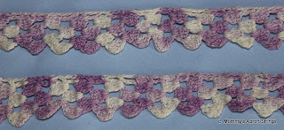 This crocheted edging is only about 36" long and it is joined in a circle. Perhaps intended for the edge of a pillowcase? I am not a big fan of variegated thread, but this would be pretty on a pillowcase with lavender embroidery.