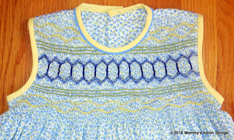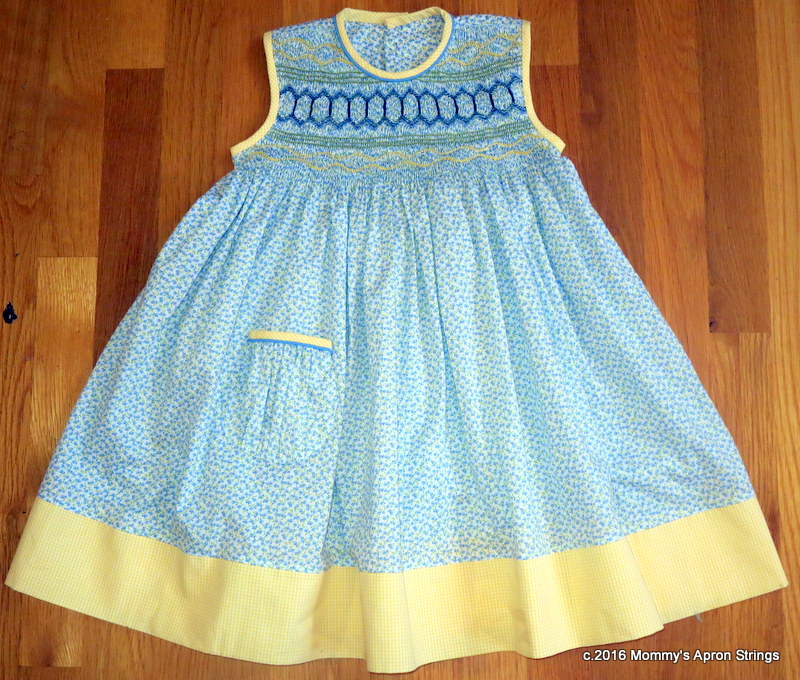 So, anyway, the smocking was done, but it just sat in a ziploc bag in my "to-do" pile. A few days ago, something inspired me to finish it.