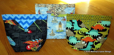 This dino bag is for Andy. These fabrics were in a grab bag.