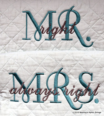 It was important to honor how "right" they are for each other, so here is hubby's sham: